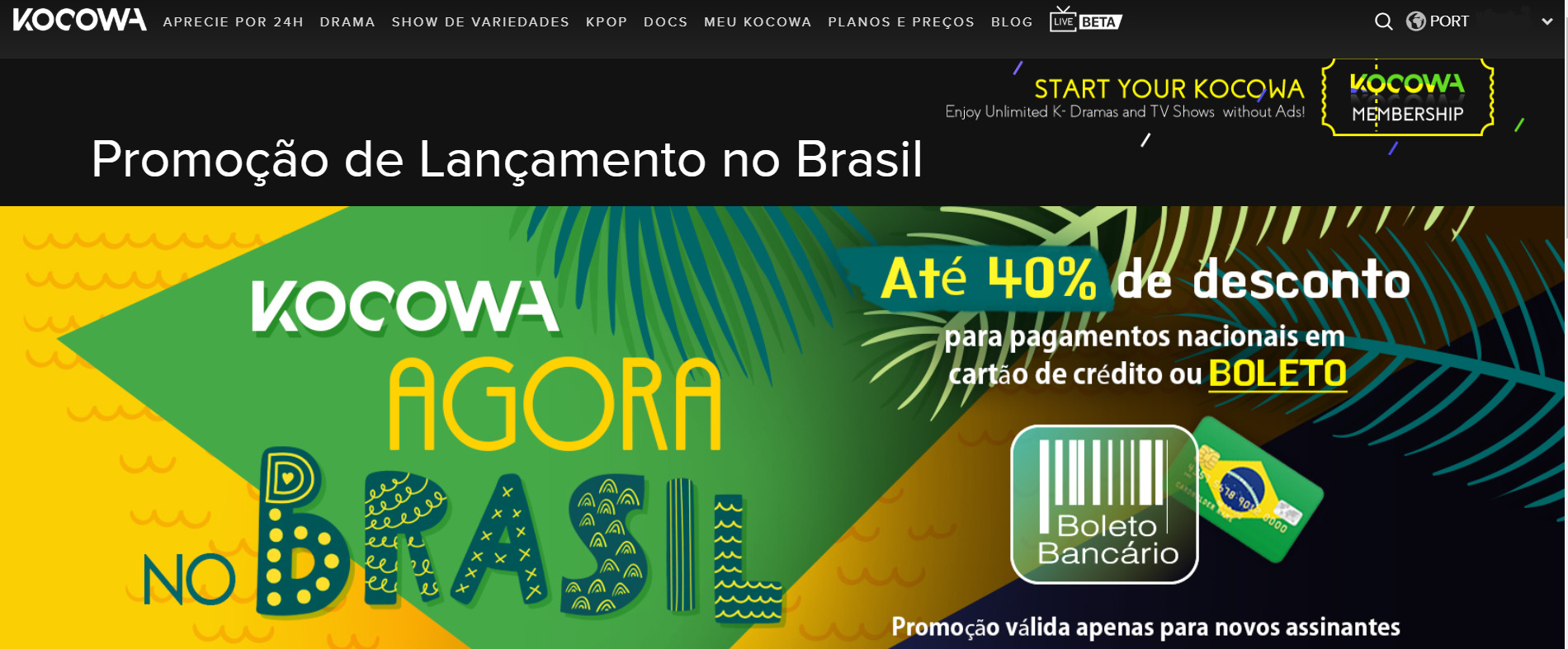 Quase na mesma época surgiu uma movimentação de pessoas pedindo para que a Kocowa também colocasse legendas em português para os fãs. Deu tão certo que agora eles estão completando um ano no Brasil por causa disso. Eles também possuem plano de pagamento que são: um diário, um mensal e um anula.